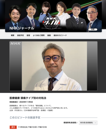 当院の 丹羽 潔 院長が、NHKラジオ(R1)『NHKジャーナル』に出演いたします。